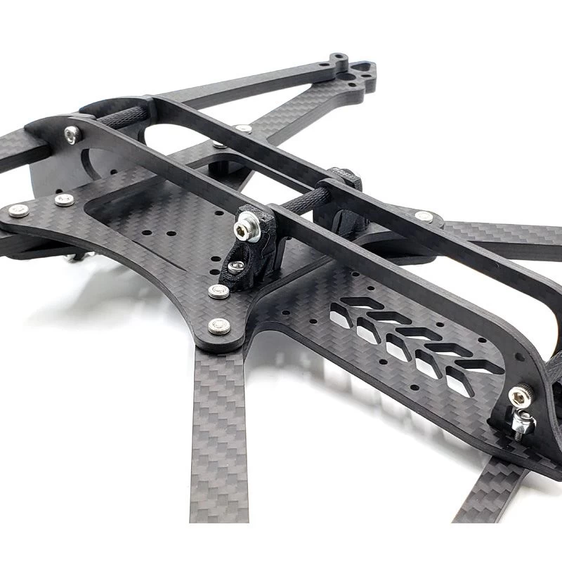 Vous pouvez également utiliser un seul côté du support si vous préférez utiliser une antenne FPV ou si votre VTX l’exige. Les dispositions pour le montage des unités GPS et des configurations crossfire (ou similaires) sont incluses en standard dans le kit. Les renforts de bras avant et arrière sont également inclus. De nombreux clients ont déclaré que le design du Shocker Tank 5″ se prête à un gros 7″. Eh bien, nous avons écouté!Â