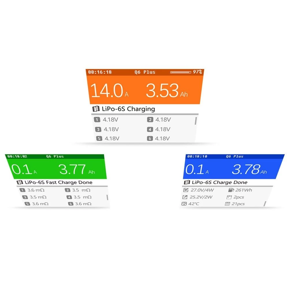 - Pris en charge Batt. Type : Autre / Lilon / LiPo / LiHv (1-6S), NiMH / Cd (1-16S), Pb (1-12S)